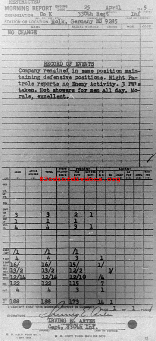 Morning report K/330 for April 25, 1945