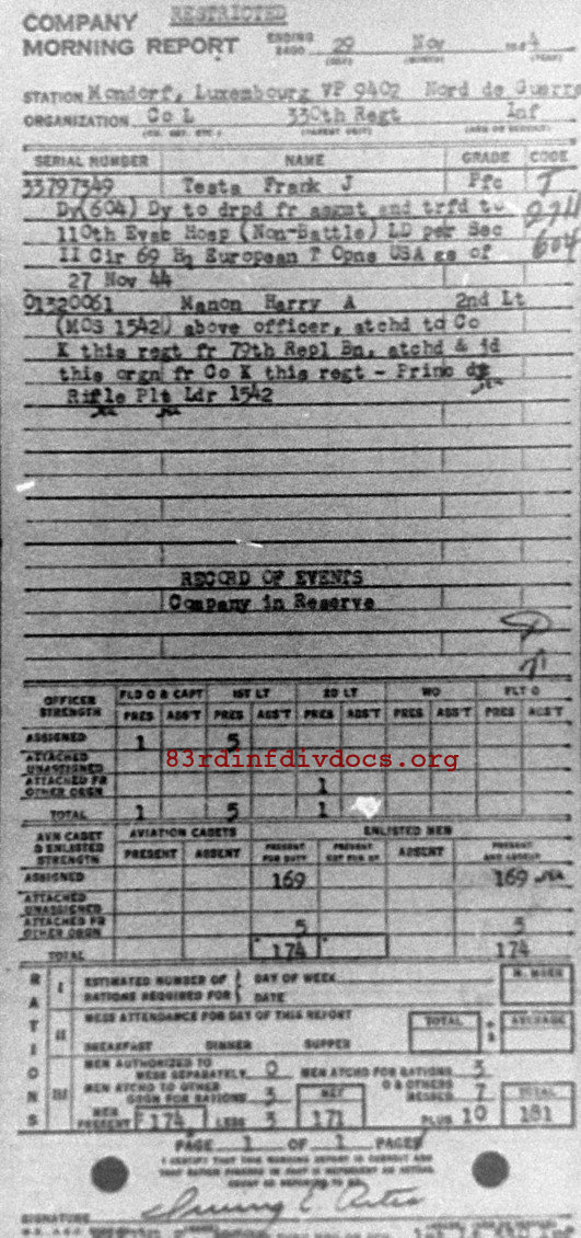 Morning report L/330 for November 29, 1944