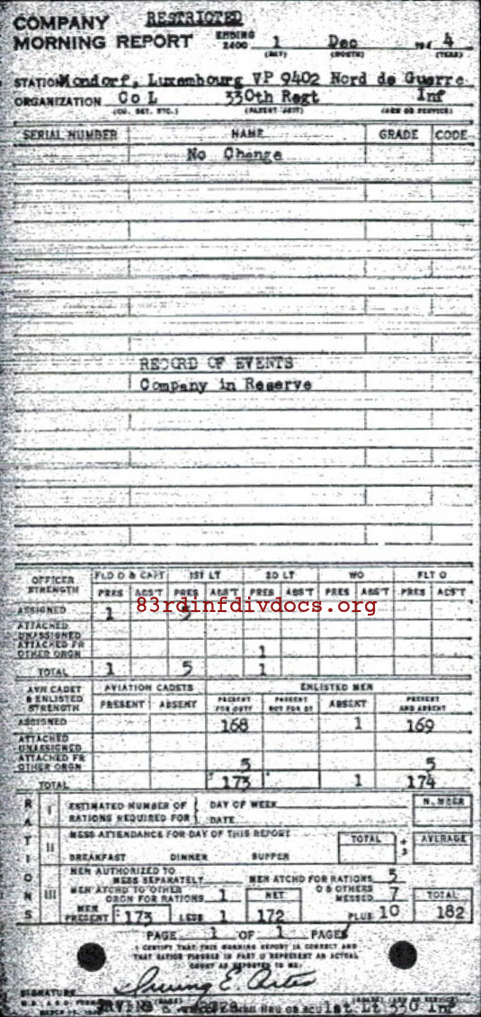 Morning report L/330 for December 1, 1944