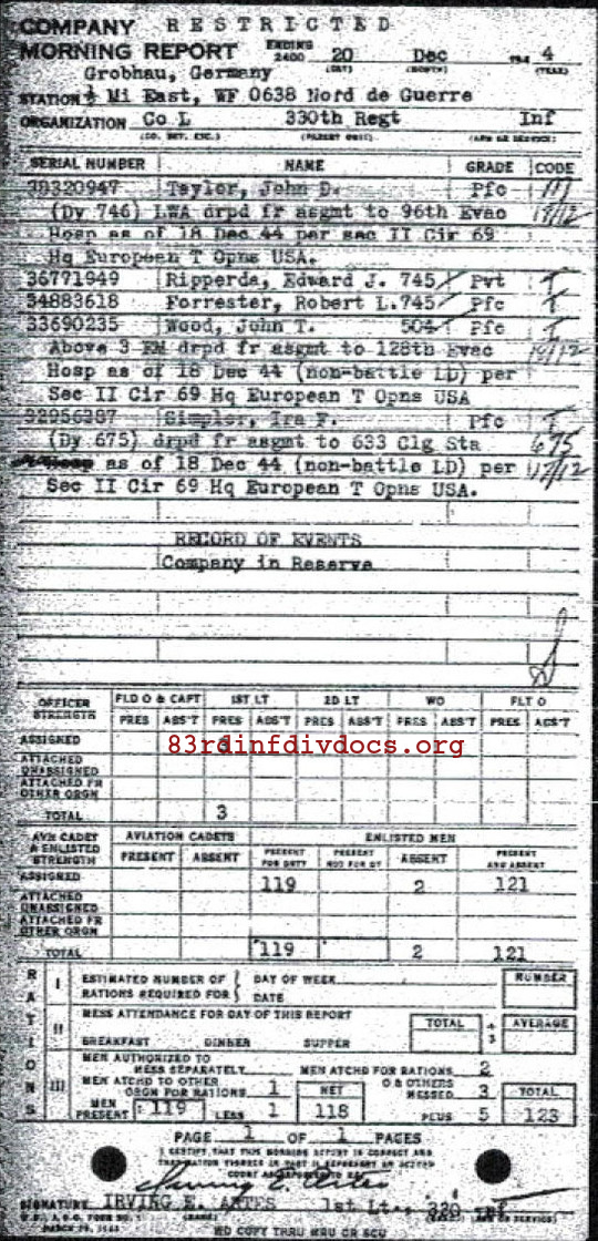 Morning report L/330 for December 20, 1944