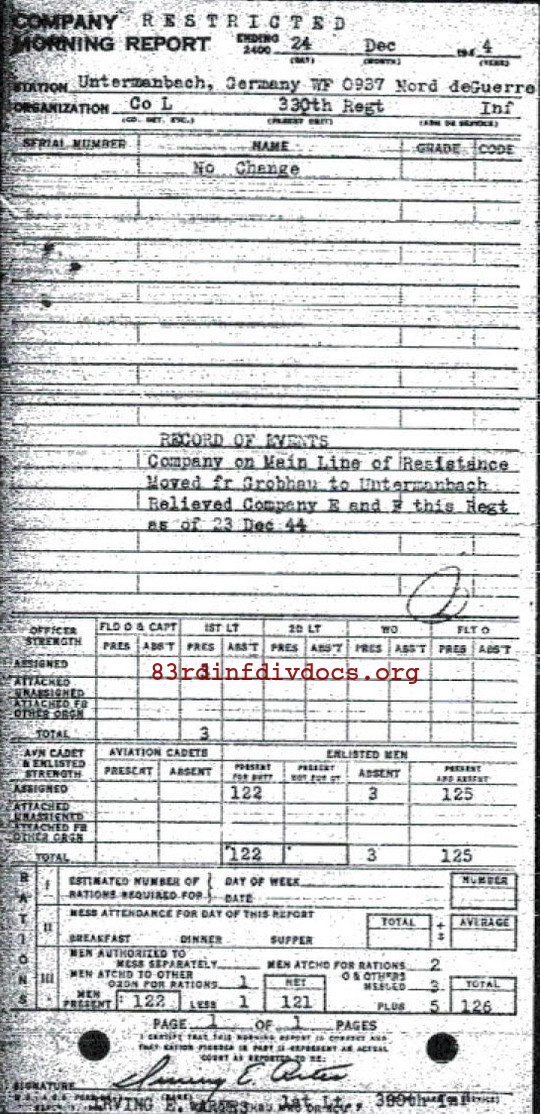Morning report L/330 for December 24, 1944