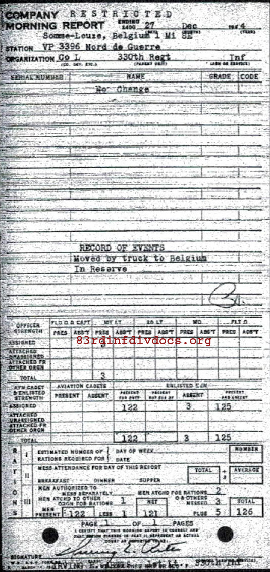 Station: 1 mile north-east of Somme-Leuze, Belgium1, vP3397