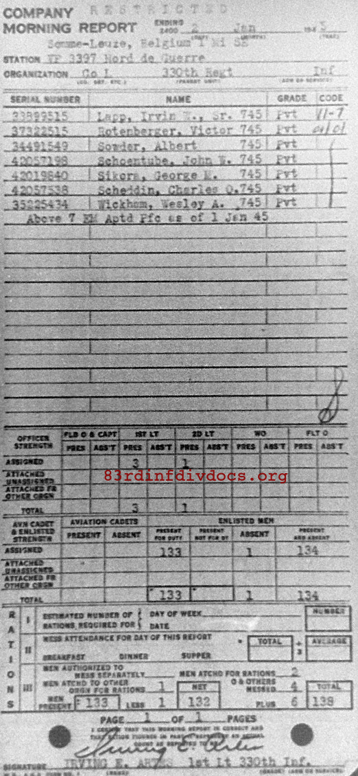 Morning report L/330 for January 2, 1945