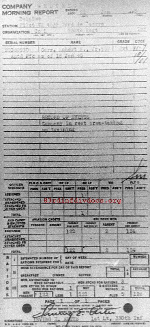 Morning report L/330 for January 22, 1945
