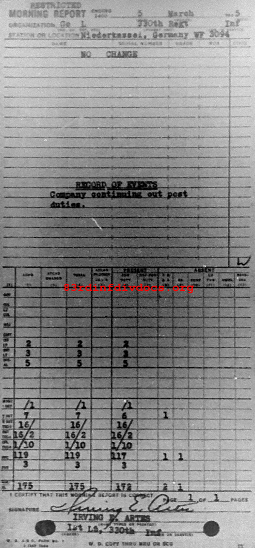 Morning report L/330 for March 5, 1945