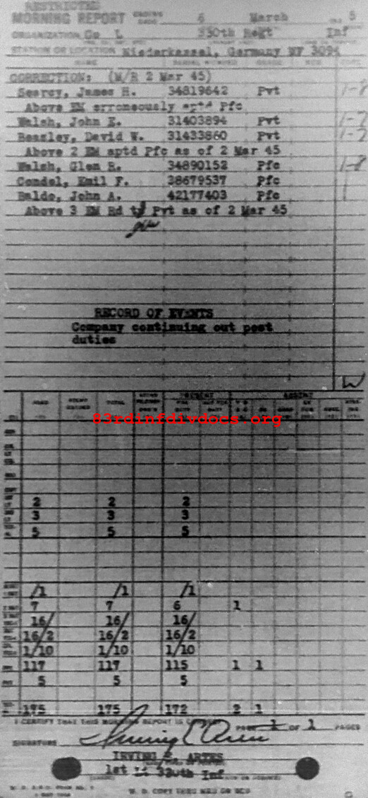Morning report L/330 for March 6, 1945