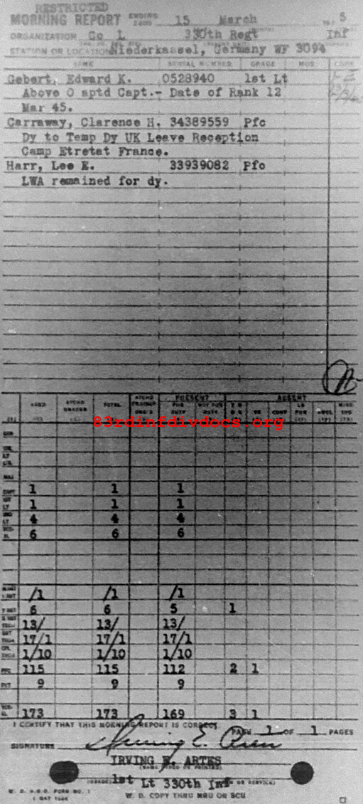 Morning report L/330 for March 15, 1945