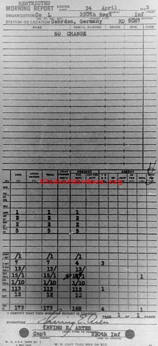 Morning report L/330 for April 24, 1945