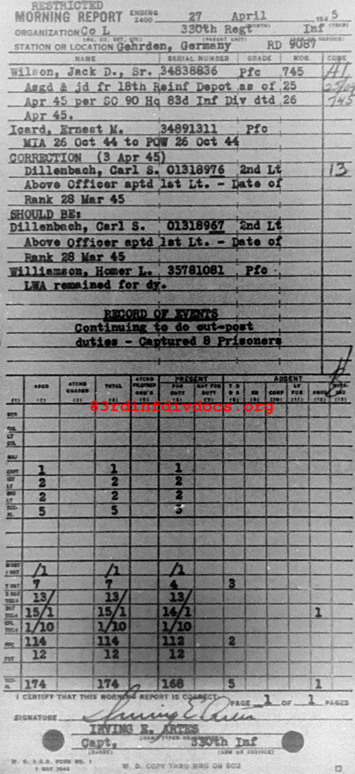 Morning report L/330 for April 27, 1945