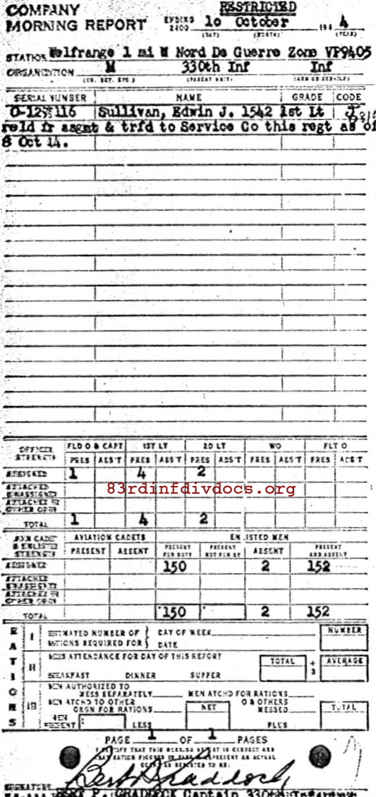 Morning report M/330 for October 10, 1944