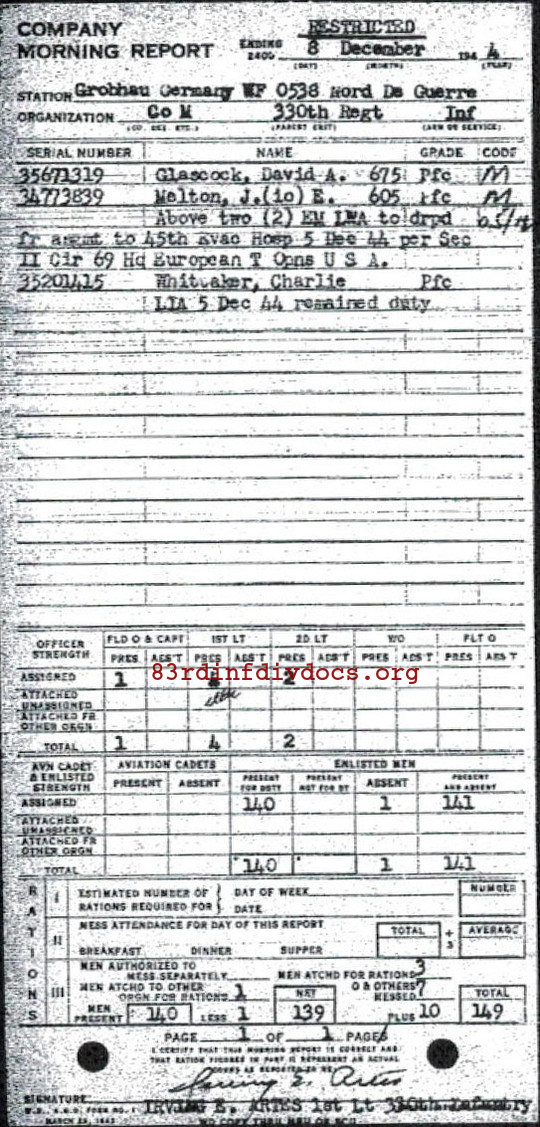 Morning report M/330 for December 8, 1944
