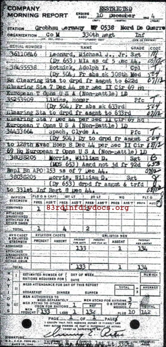 Morning report M/330 for December 10, 1944