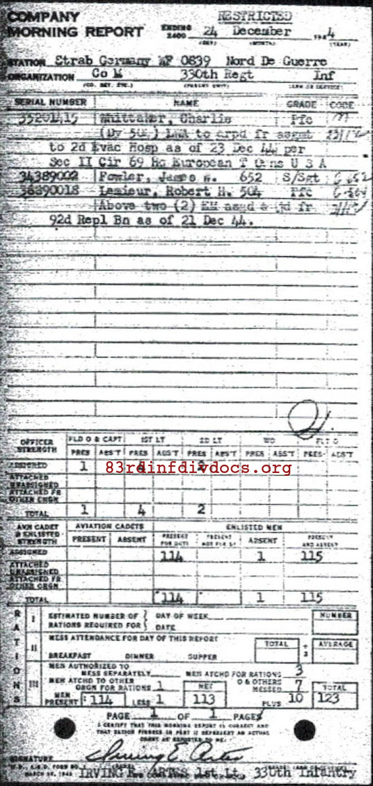 Morning report M/330 for December 24, 1944