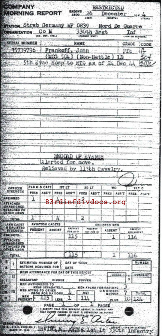 Morning report M/330 for December 26, 1944