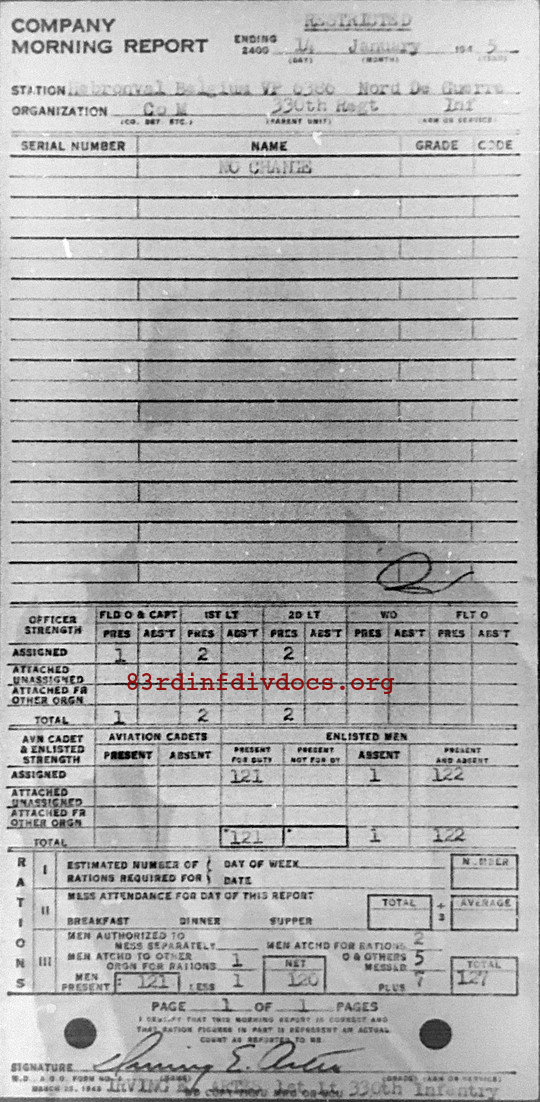 Morning report M/330 for January 14, 1945