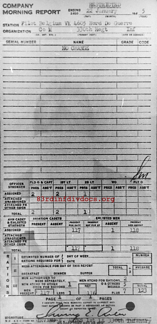 Morning report M/330 for January 22, 1945