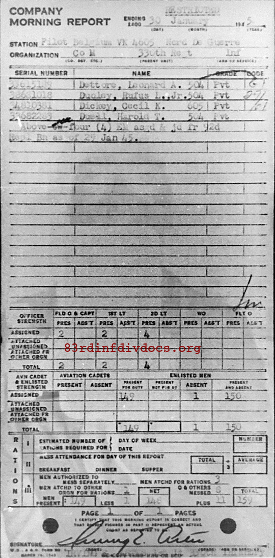 Morning report M/330 for January 30, 1945