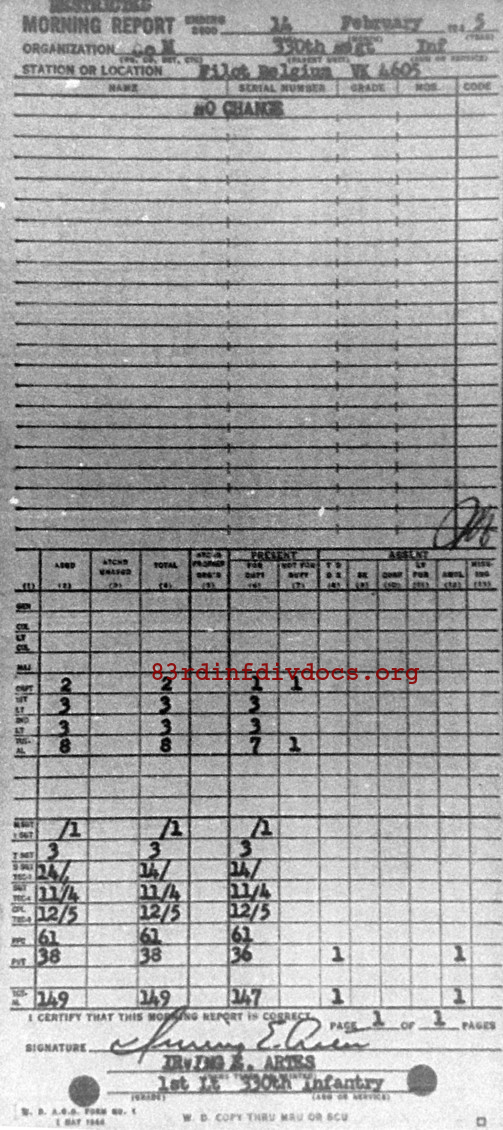 Morning report M/330 for February 14, 1945