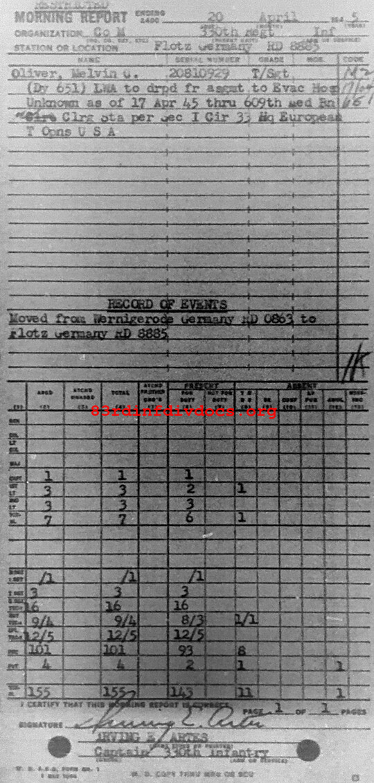 Morning report M/330 for April 20, 1945