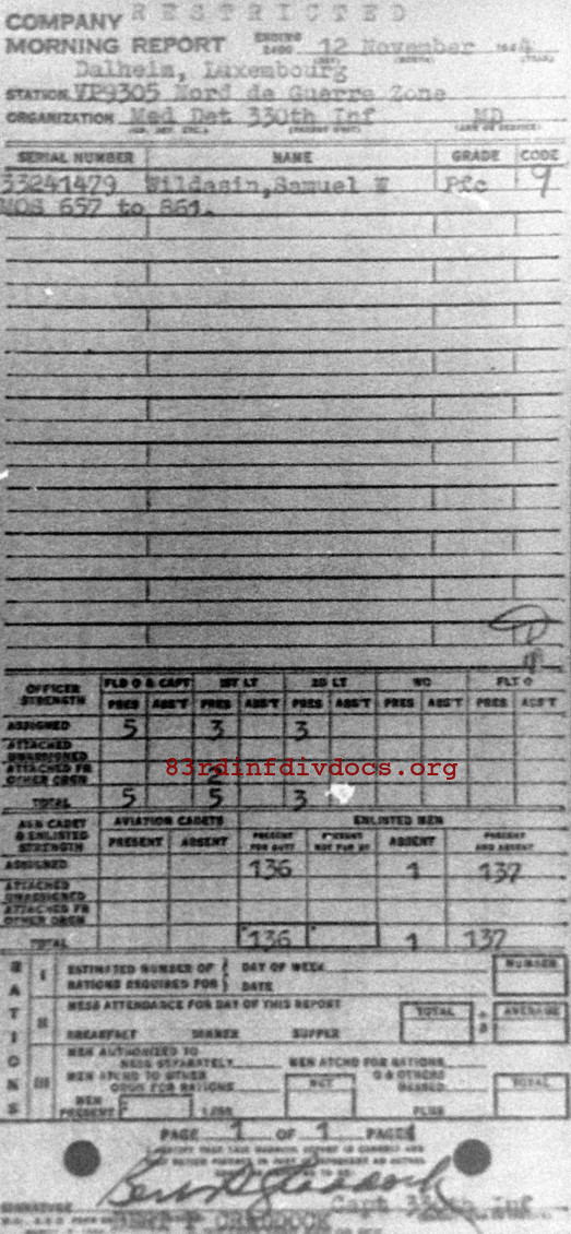 Morning report MEDDET/330 for November 12, 1944