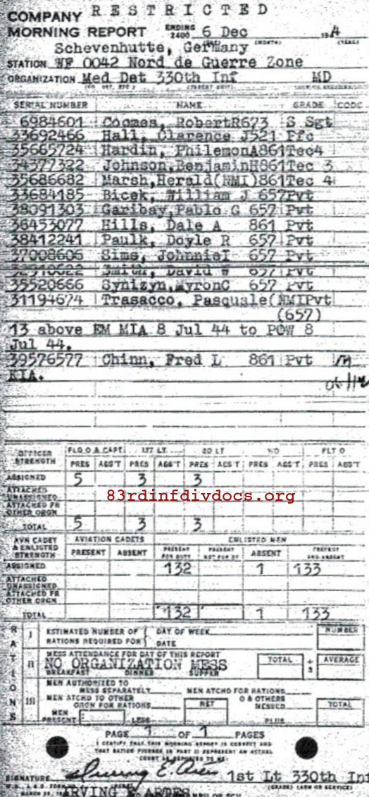 Morning report MEDDET/330 for December 6, 1944