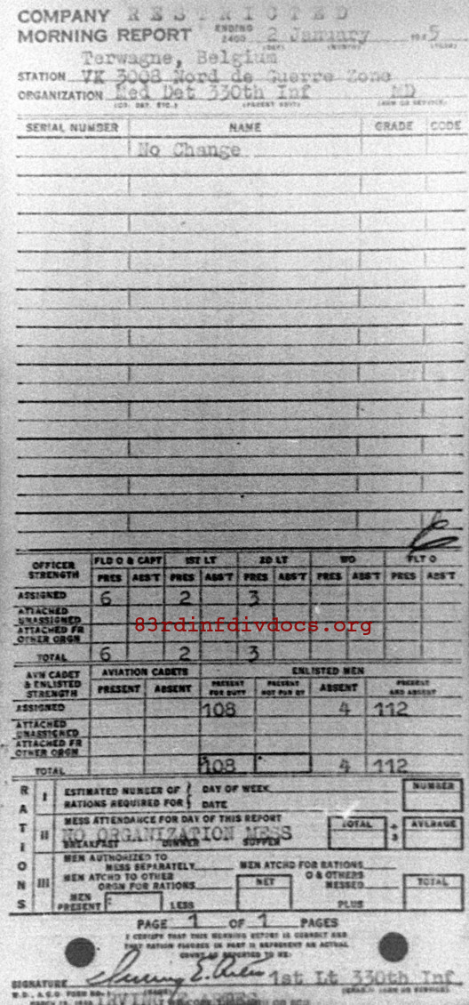 Morning report MEDDET/330 for January 2, 1945