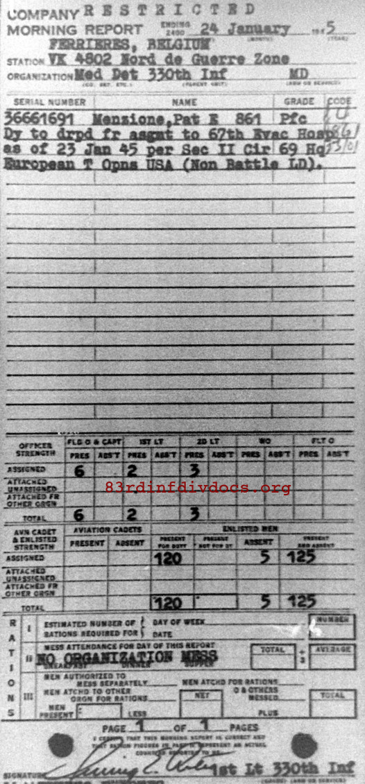 Morning report MEDDET/330 for January 24, 1945