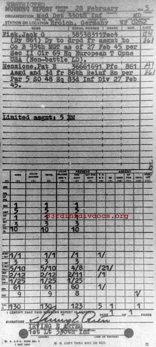 Morning report MEDDET/330 for February 28, 1945
