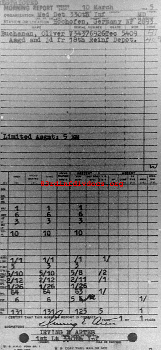 Morning report MEDDET/330 for March 10, 1945