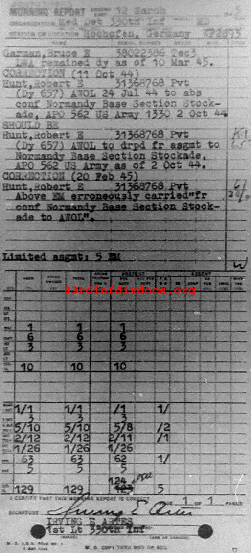 Morning report MEDDET/330 for March 12, 1945