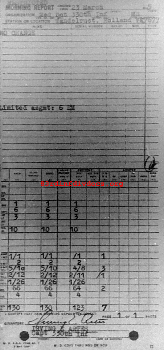 Morning report MEDDET/330 for March 23, 1945