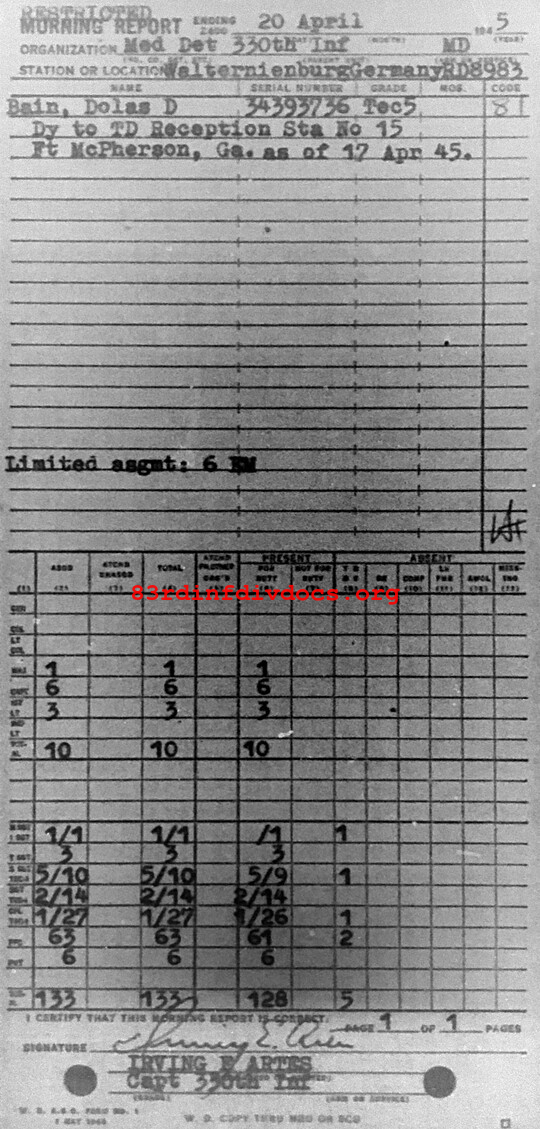 Morning report MEDDET/330 for April 20, 1945