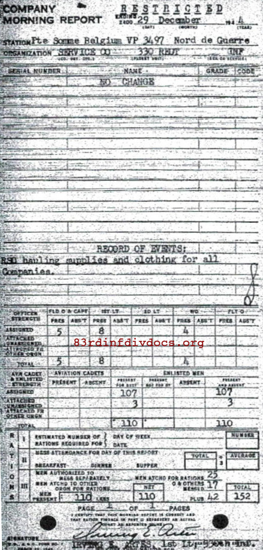 Morning report SERCO/330 for December 29, 1944