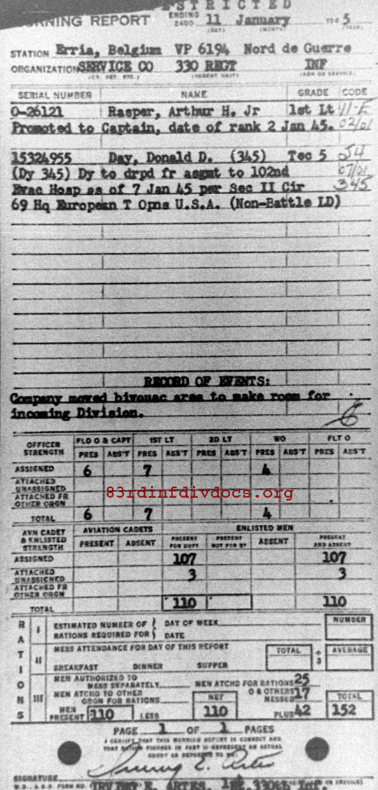 Morning report SERCO/330 for January 11, 1945