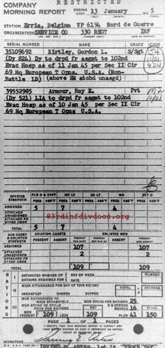 Morning report SERCO/330 for January 13, 1945