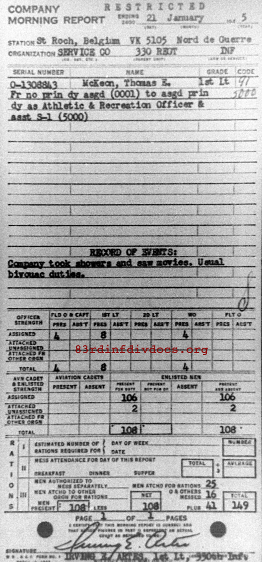 Morning report SERCO/330 for January 21, 1945