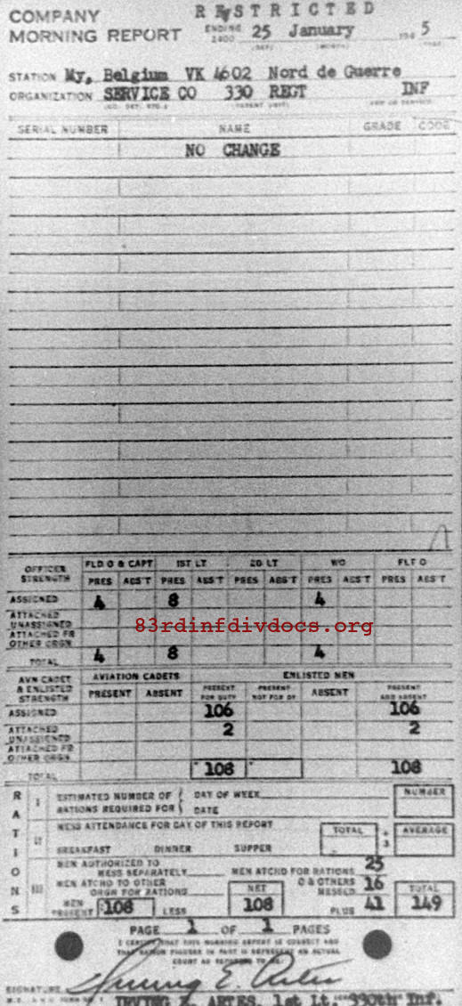 Morning report SERCO/330 for January 25, 1945