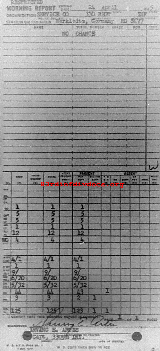 Morning report SERCO/330 for April 24, 1945