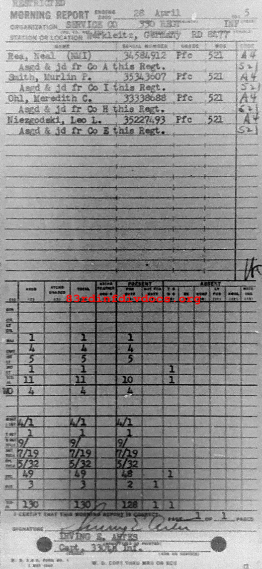 Morning report SERCO/330 for April 28, 1945