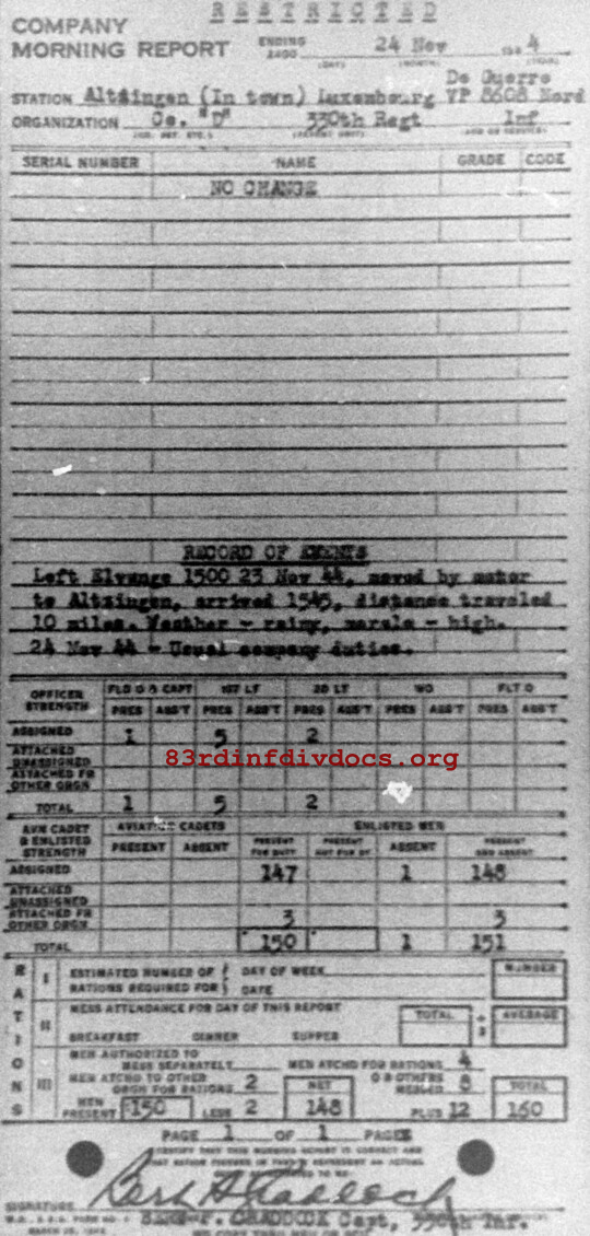 Morning report D/330 for November 24, 1944