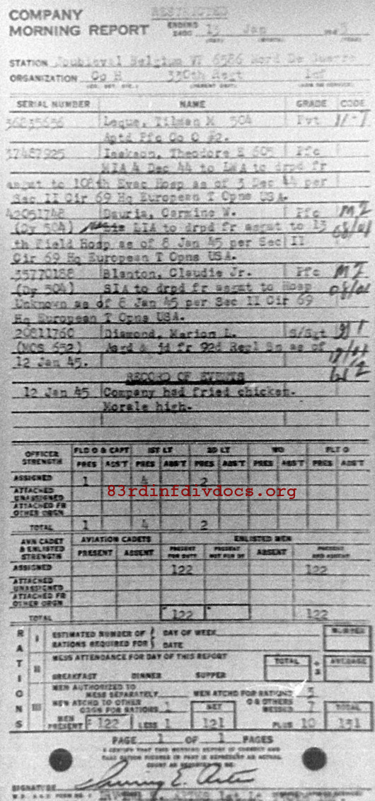Morning report H/330 for January 13, 1945