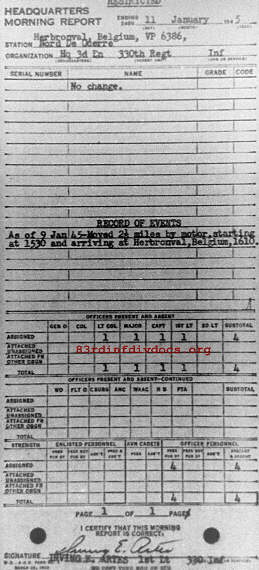 Morning report HQ3BN/330 for January 11, 1945