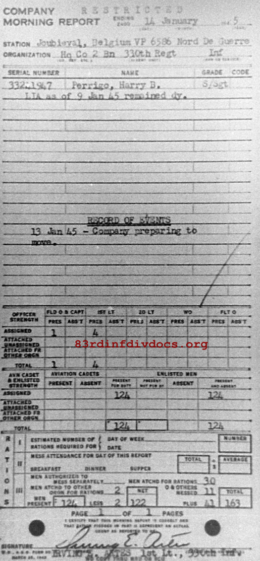 Morning report HQCO2BN/330 for January 14, 1945