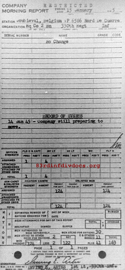 Morning report HQCO2BN/330 for January 15, 1945