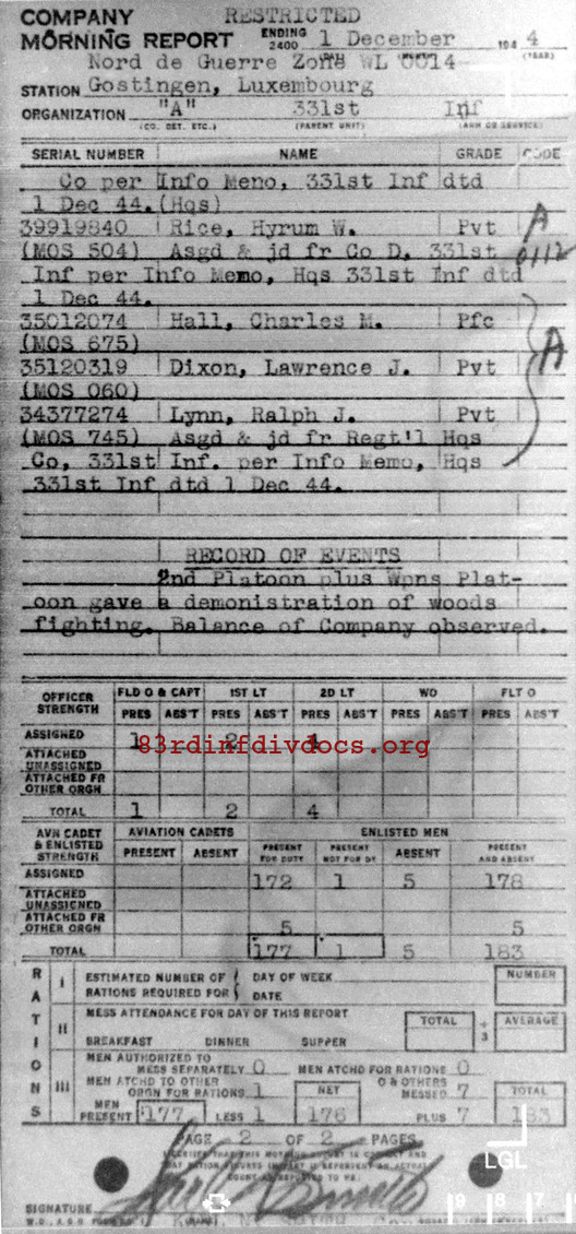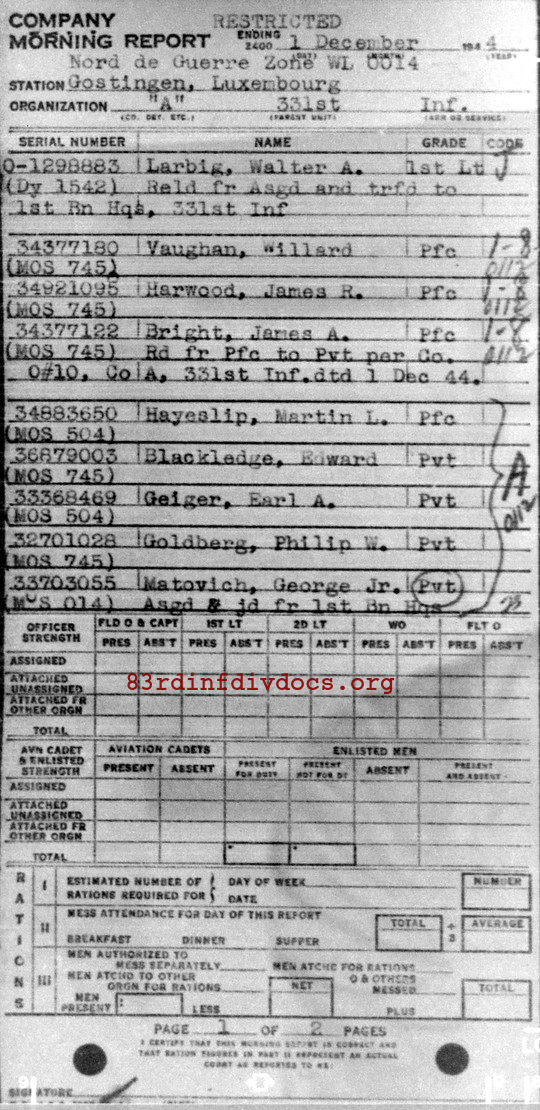 Morning report A/331 for December 1, 1944