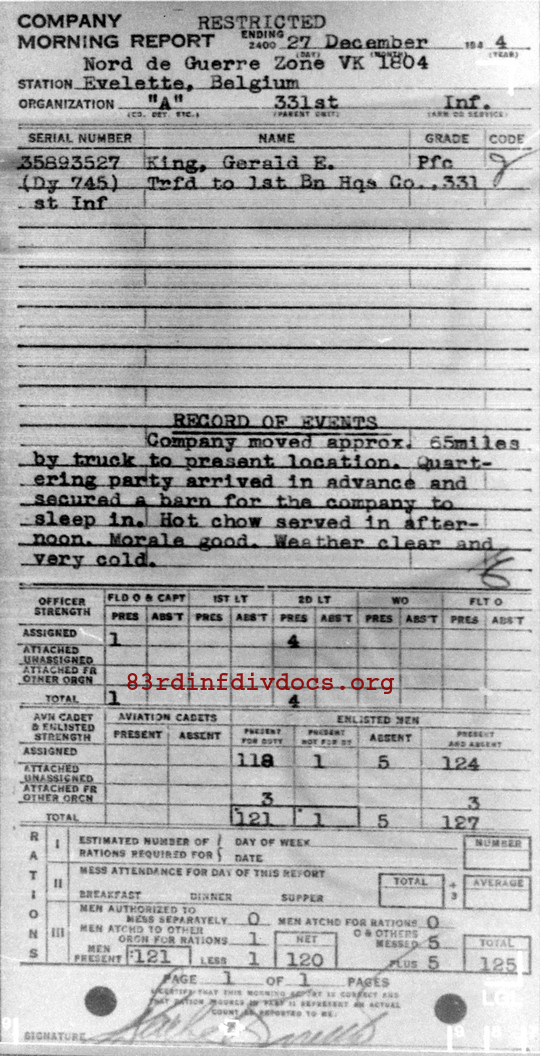 Morning report A/331 for December 27, 1944