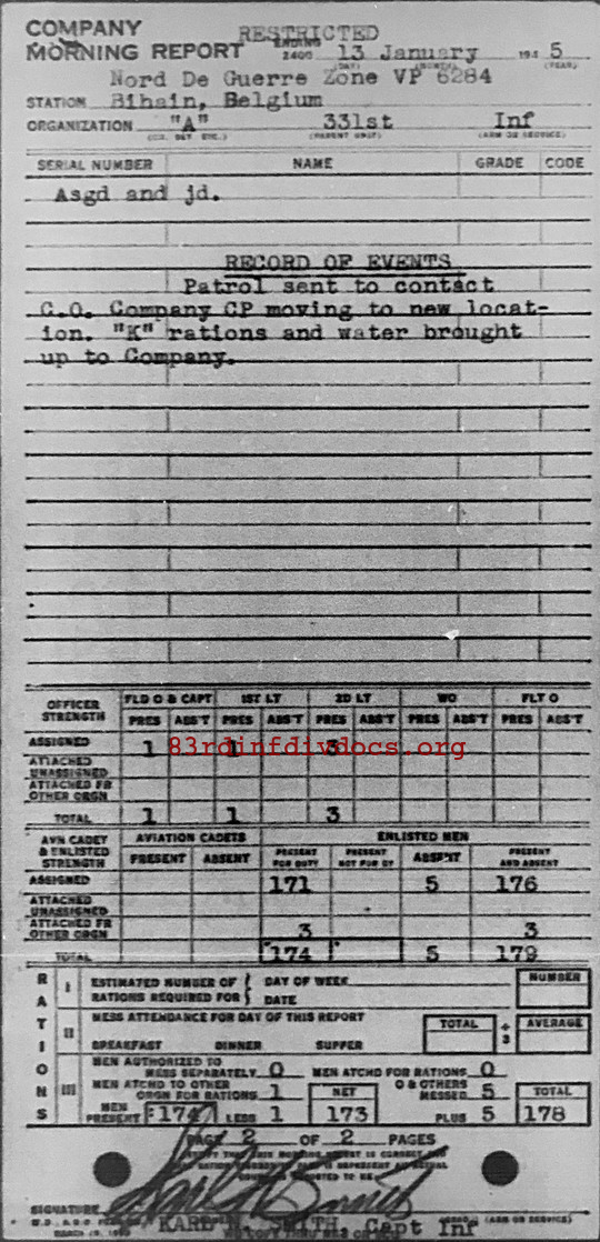 Morning report A/331 for January 13, 1945