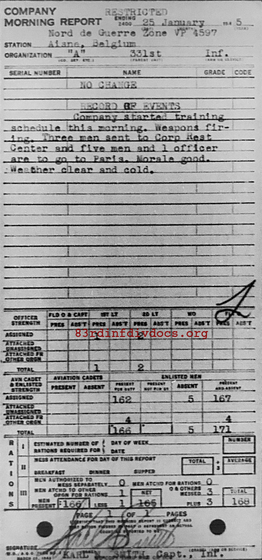 Morning report A/331 for January 25, 1945
