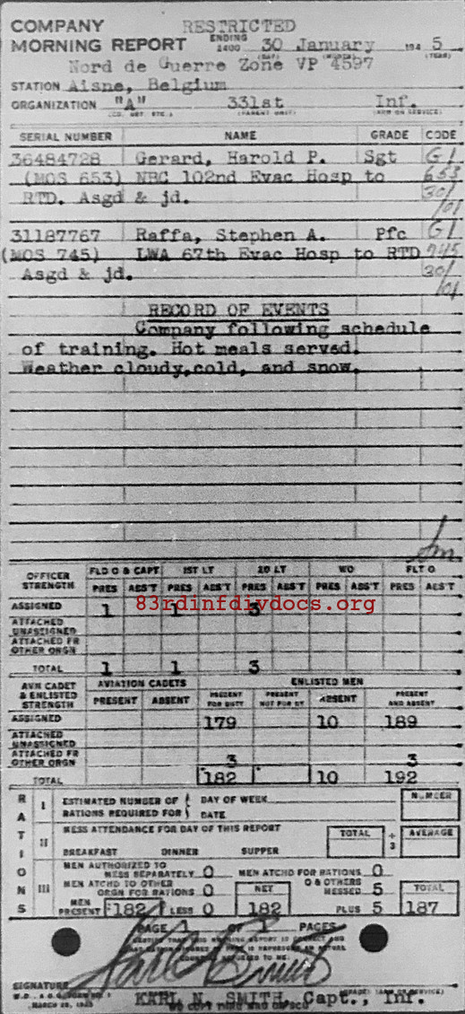 Morning report A/331 for January 30, 1945