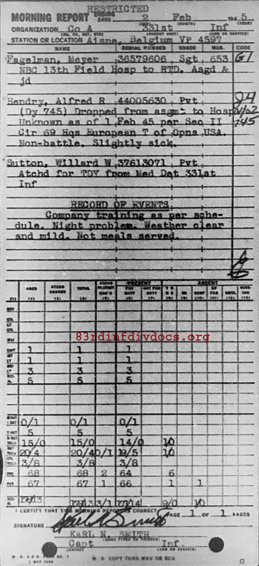 Company training as per schedule. Night problem. Weather clear and mild. Hot meals served.